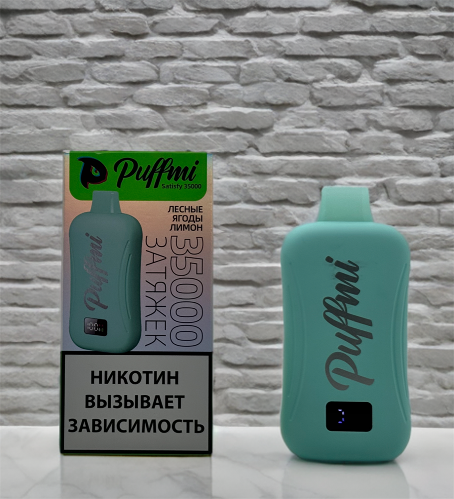 Купить одноразовые электронные сигареты Puffmi Satisfy 35000 на 35000 затяжек с подзарядкой Type-C и индикаторами оставшегося заряда и оставшейся жидкости с доставкой или самовывозом из вейп шопов в Москве и доставкой по России.
